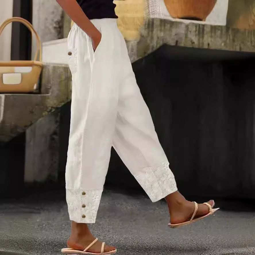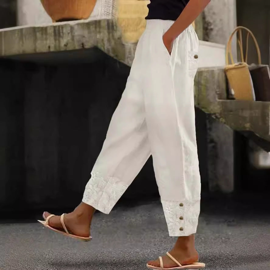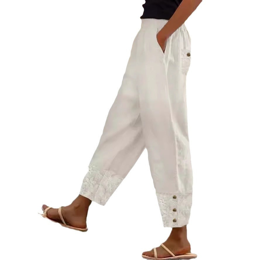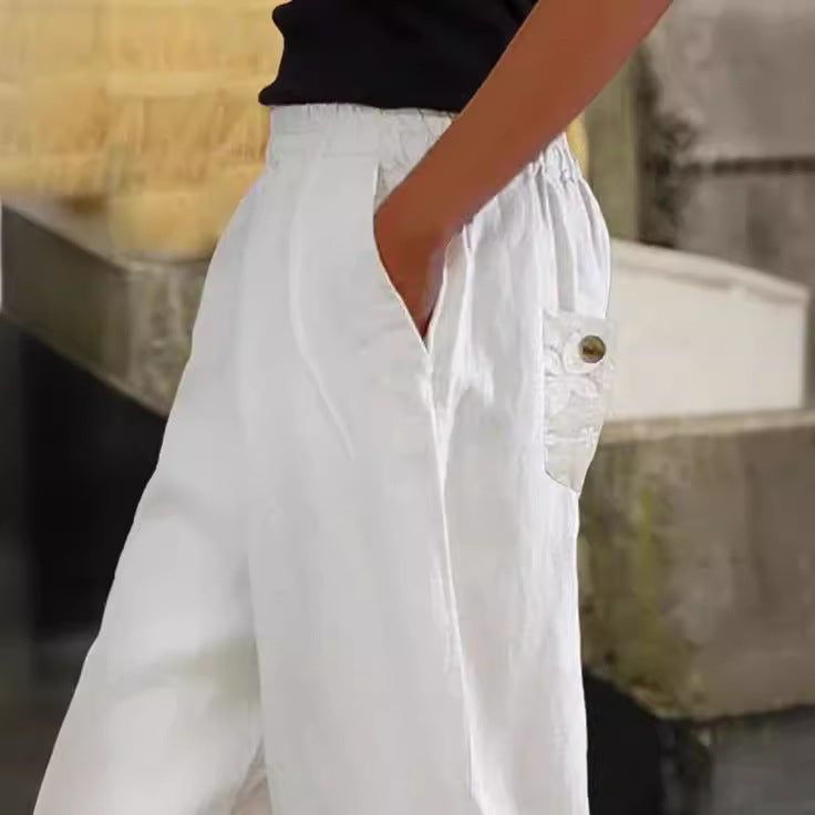 Women's Cropped Pants Casual Loose All-matching Elastic Waistband Trousers